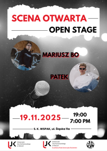 19 listopada 2025 r. o godz. 19:00 zapraszamy do Studenckiego Klubu WSPAK (ul. Śląska 11a) na wyjątkowy koncert inaugurujący naszą Scenę Otwartą! Na scenie pojawią się: Mariusz Borowicz – Sam na scenie, ale z dźwiękiem, który potrafi zatrząść salą. Zapraszam na wieczór pełen emocji, gitar i historii, które wydarzyły się naprawdę. Do zobaczenia pod sceną! […]